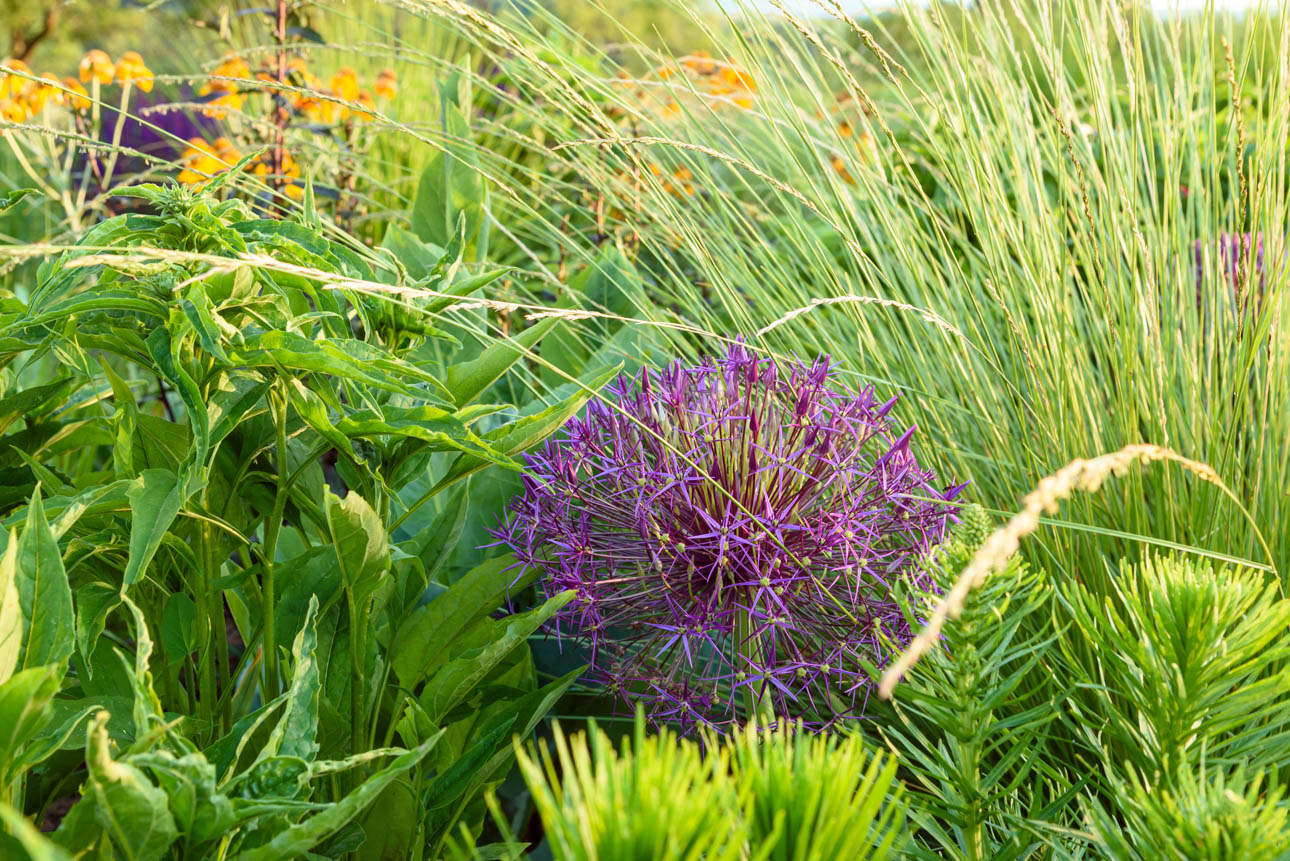 Allium christophii bildet imposante Blütenkugeln aus zahlreichen, sternförmigen, metallisch glänzenden Einzelblüten und ist damit ein markanter Blickpunkt im Staudenbeet. Wir setzen ihn am liebsten eng an einen Atlas-Schwingel.