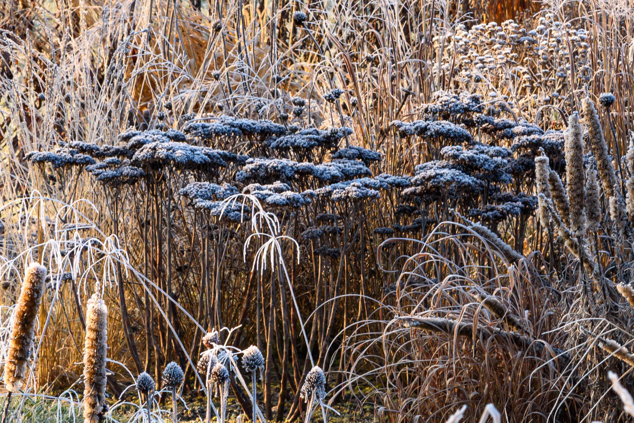 | Winteraspekt | Strukturgebende dunkelbraune Blütenstände |